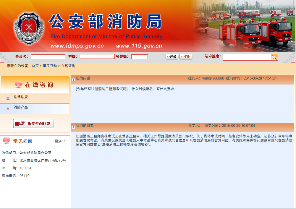 7月2日公安部消防局在其官网正式回应:注册消防工程师初步预计2015年年底组织首次考试。考试正在筹备中,相关工作需要国家有关部门审批,具体时间预计在年底,一经确定将第一时间公布消防工程师考试的具体时间。